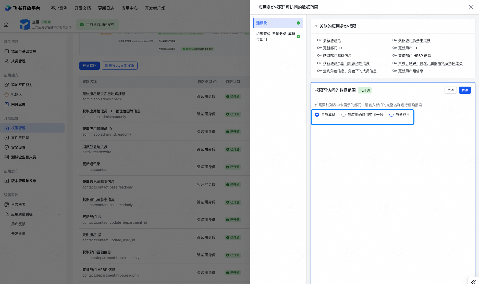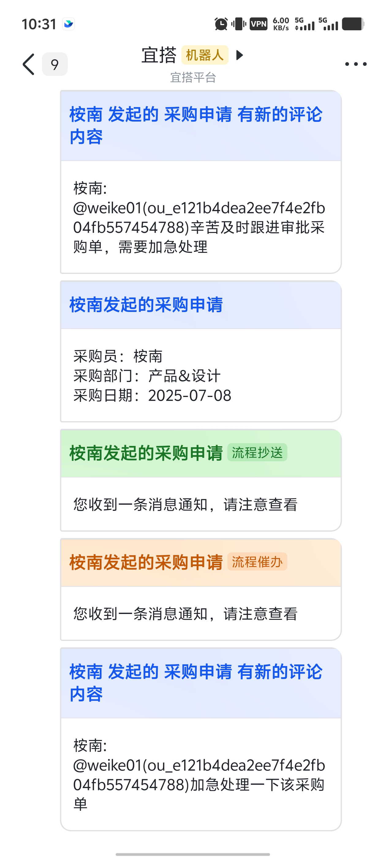 组织架构通 飞书/企业微信通讯录数据同步到宜搭平台 ![]() ![]() 可管控同步通讯录范围 ![]() 可同步为平台管理员 ![]() | 实现统一登录 从企业微信/飞书,无缝打开宜搭应用,无需二次登录 ![]() | 消息通知打通 宜搭消息发送到企业微信/飞书客户端 ![]() | 支持成员多部门 支持成员多部门的场景 ![]() | 支持部门和直属主关系 宜搭场域兼容部门主管和直属主管 ![]() |