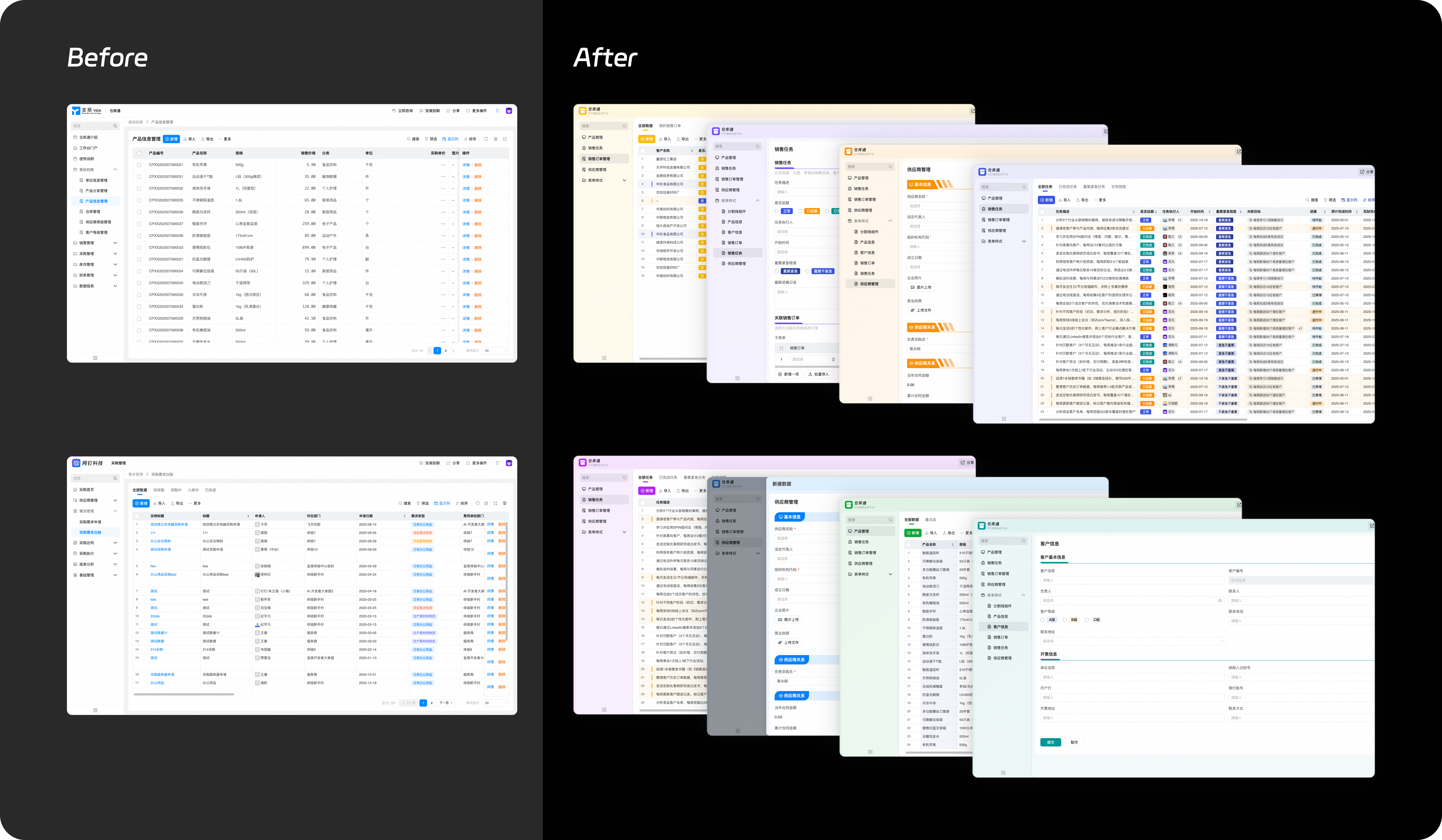 3、数据管理页: 打磨字号、颜色、间距等UI 标签化:将关联表单、成员、单选、复选、下拉单选、下拉复选6个组件进行标签化 单选多选的标签化设置更简单,颜色设置前置,喂到用户脸上 条件填色,提高看数效率,支持行、列、单元格按照特定的业务条件进行填色,让找数据更高效 | ![]() ![]() |