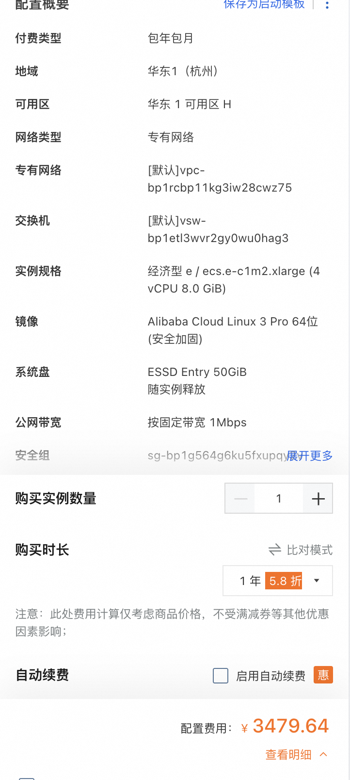 部署版本配置&阿里云报价参考(不同阿里云账号,优惠不同,下图报价仅供参考)