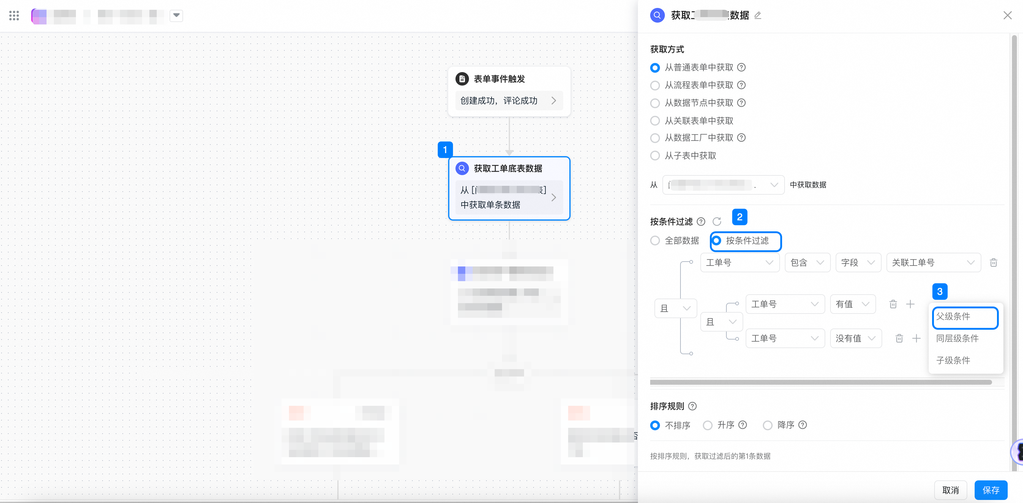 4. 集成自动化数据节点的过滤条件增加“父级条件”