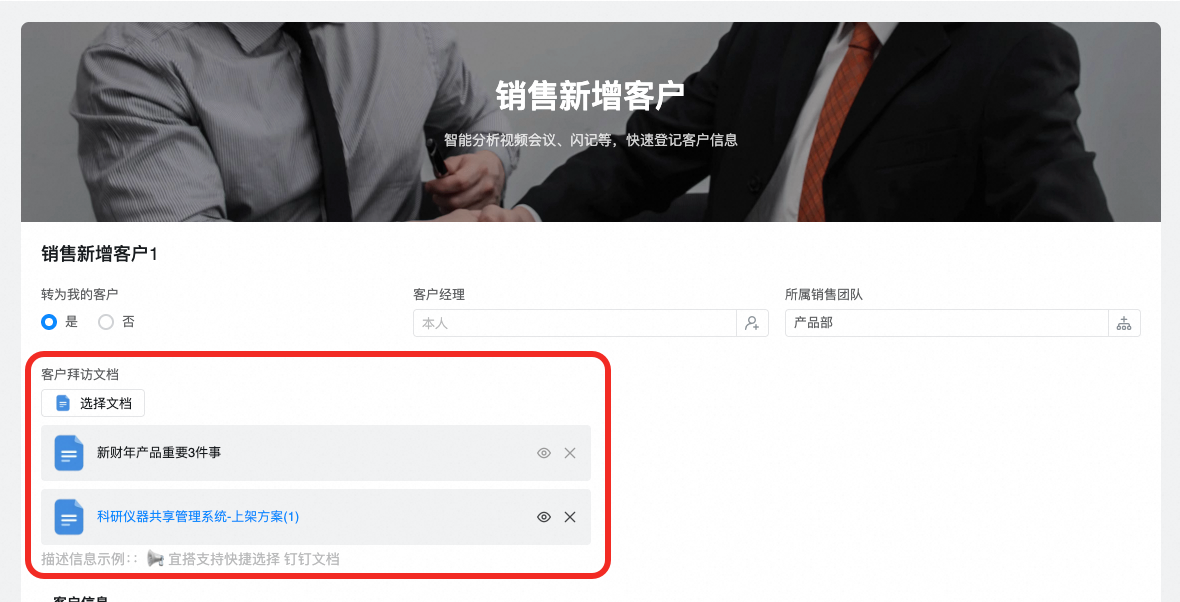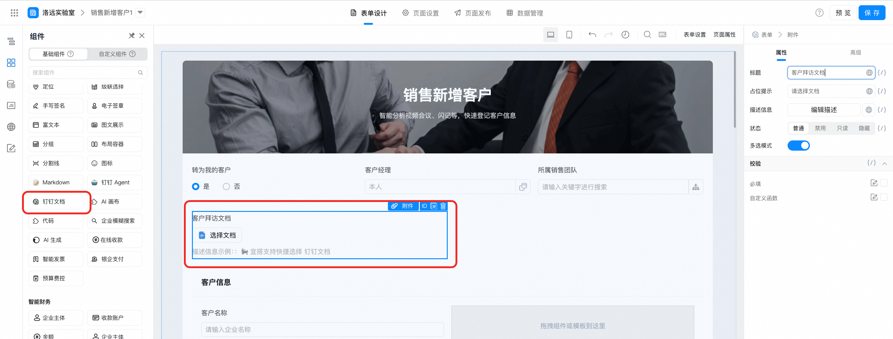 1. 宜搭表单:新增 「钉钉文档」选择组件