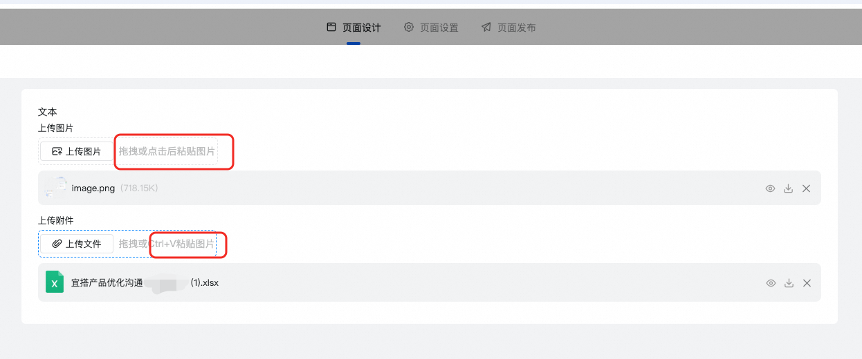 | 在电脑端使用时,当光标焦点被点击时,支持系统键盘快捷黏贴: 表单、自定义页面:图片、附件组件升级 数据管理页:上传Excel附件时,控件升级 ![]() ![]() |